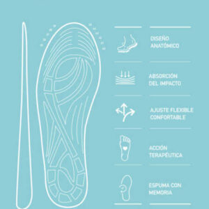Amortiguan el impacto en cada pisada logrando una perfecta acción terapéutica. Las plantillas otorgan el confort necesario para andar todo el día con cualquier calzado. Son de larga duración, fabricadas en poliuretano con memoria y forradas con microfibra suave y absorbente en color coco.